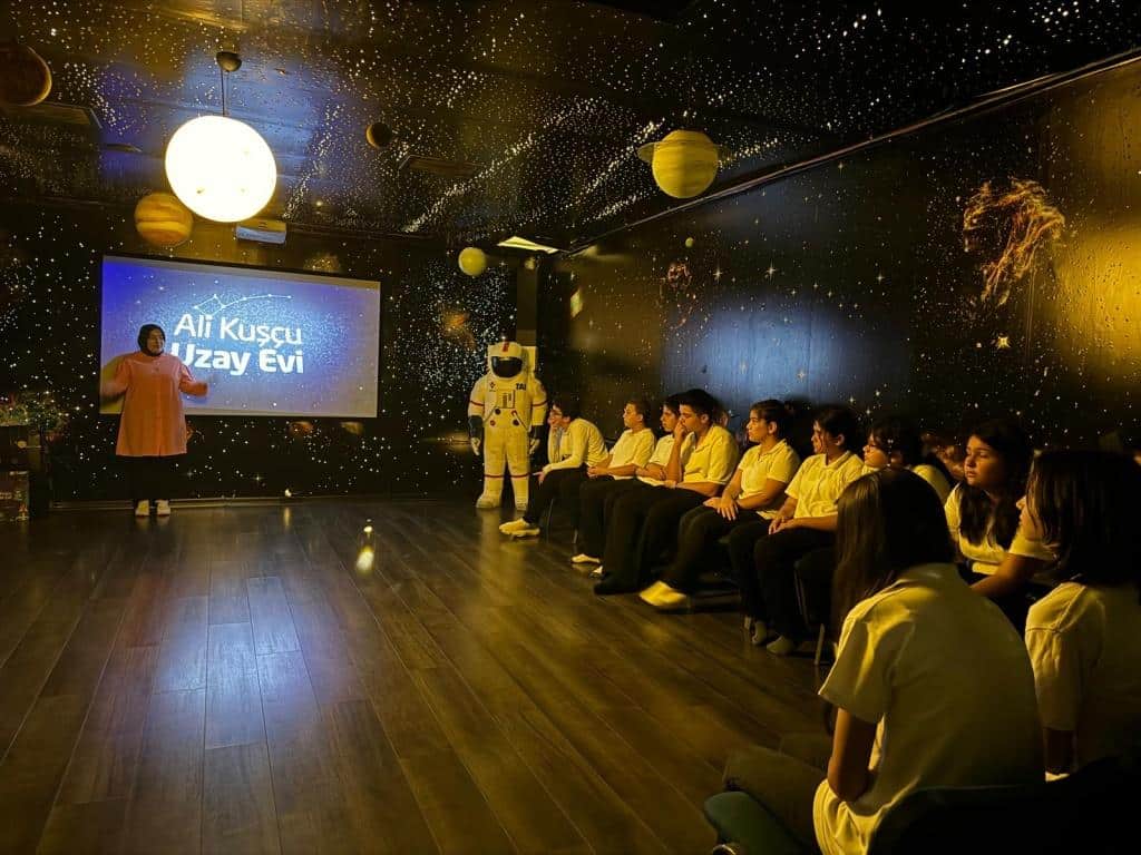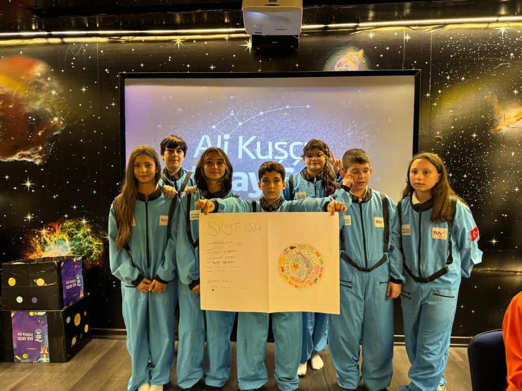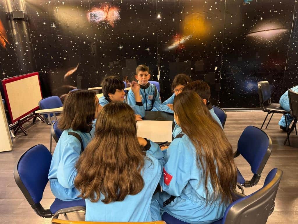 7/C sınıfı olarak Eyüpsultan’da bulunan Ali Kuşçu Uzay Evi’ni ziyaretimizde uzay istasyonları, astronotların günlük yaşamı ve uzay mühendisliği kavramlarını ele aldık. Belirlediğimiz uzay görevi için takımımızla birlikte “Görev Arması” tasarımı yaptık.