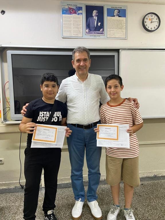 Okulumuzda 2024-2025 eğitim-öğretim yılı yıl sonu karne töreni coşku ile gerçekleştirildi. Törende 5, 6, 7 ve 8. sınıf düzeylerinde yıl boyunca akademik başarı göstererek dereceye giren öğrencilerimiz ödüllerini öğretmenlerinin elinden aldı. Ayrıca 5. sınıf öğrencilerimize karneleri Okul Müdürü Güngör GÜRELİ tarafından dağıtıldı. Ayrıca sene içerisinde sportif ve kültürel aktivitelerde derece alan öğrencilerimize Müdür Yardımcımız Çiğdem PARLIYAN UZUNCAOVA ödüllerini verdi.